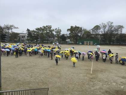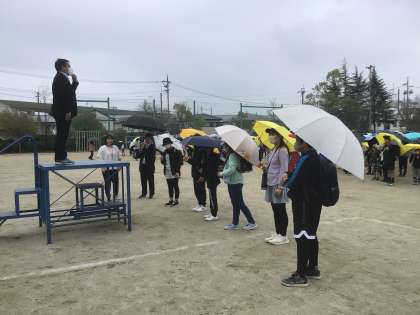 小雨が降り出した中での下校となりました。