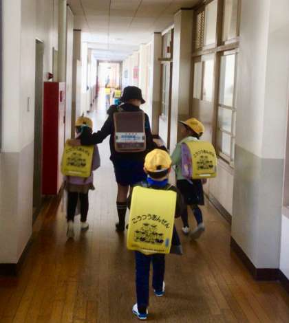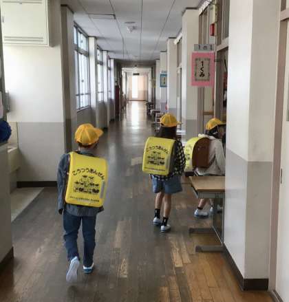 6年生の中には、1年生を教室まで送り届けています。