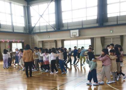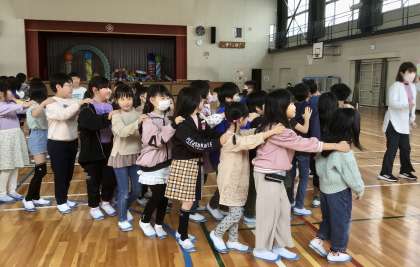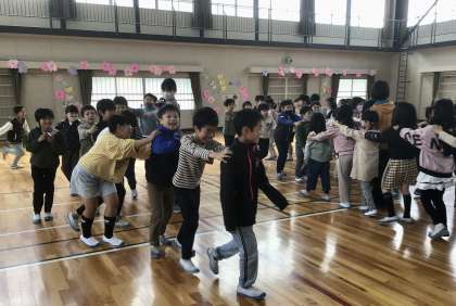 4月11日の梅坪小学校(5)3年生 ジャンケン列車