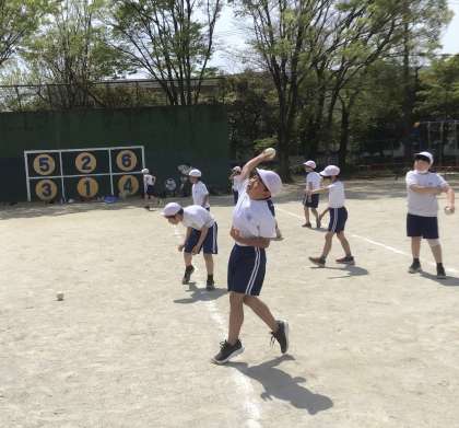 今日は、体力テストを控え、ボール投げの練習をしました!