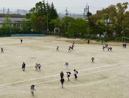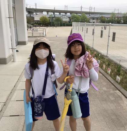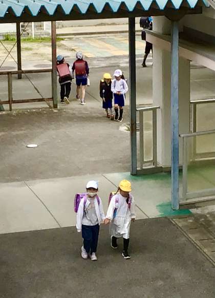 4月18日の梅坪小学校(1)今朝の登校風景