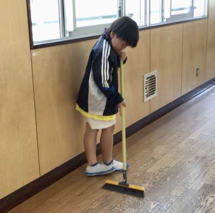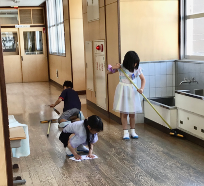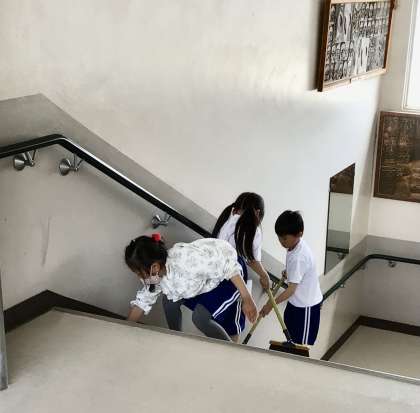梅坪小の自慢の一つ、無言清掃の様子です!