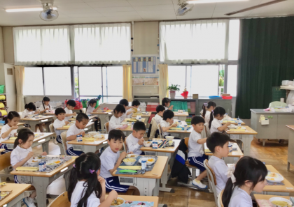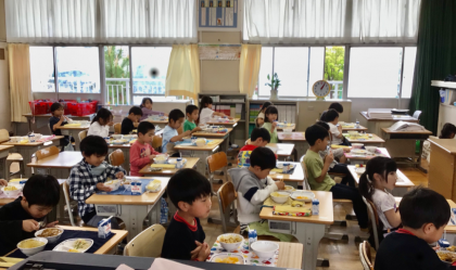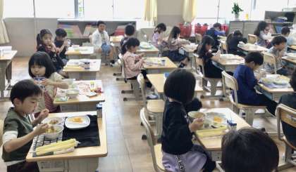 4月22日の梅坪小学校(4)やったあ!カレーだ。
