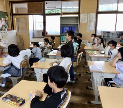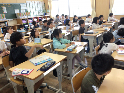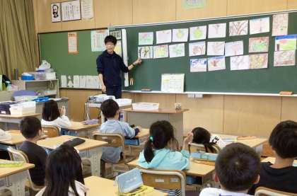皆さん、仲間の作品と比べながら、色づかいや構成などの気づきを述べ合いました。