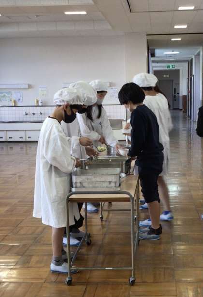 4月25日の梅坪小学校(3)ポークビーンズほか。