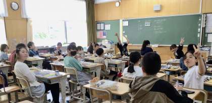 4月25日の梅坪小学校(7)6年生 会食の様子