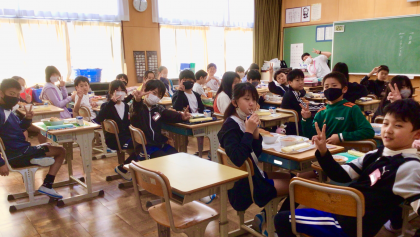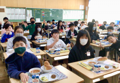 4月25日の梅坪小学校(8)6年生 会食の様子