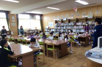 特別支援学級、図書館利用のオリエンテーションの時間です。