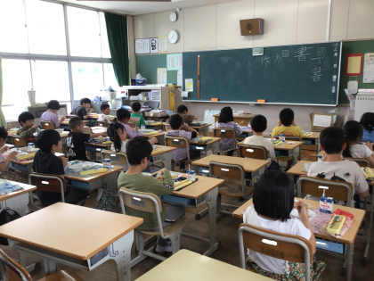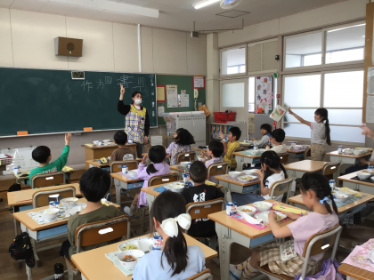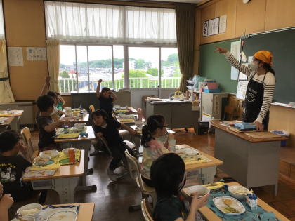 4月26日の梅坪小学校(7)2年生の会食風景