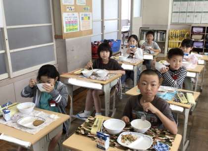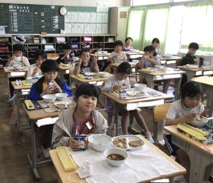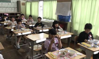 4月30日の梅坪小学校(9)3年生の会食風景