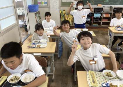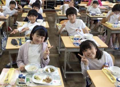 5月1日の梅坪小学校(8)4年生の給食の様子