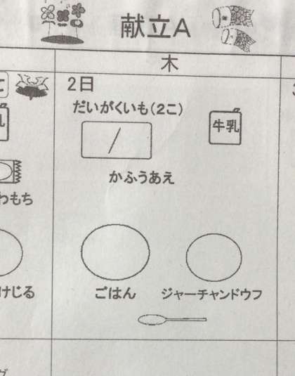 5月2日の梅坪小学校(6)ジャーチャンドウフ…ほか。
