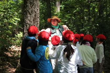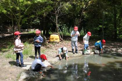 今日は、2年2組の児童がトヨタの森へ出かけました。2グループに分かれて、活動しました。虫めがねを一人1つずつ使い、葉や花など細かいものまでしっかり観察していました。池ではたくさんのオタマジャクシを見つけて、一生懸命採りました。触るのが苦手だった子もチャレンジしていました。五感を使い、普段は体験できないものばかりで、貴重な時間となりました。