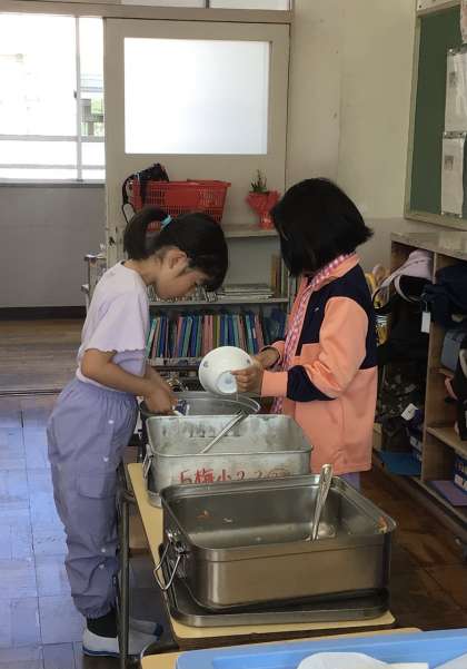 5月9日の梅坪小学校(9)2年生の給食風景