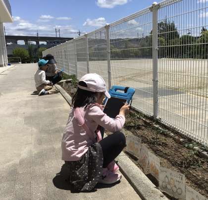 葉っぱの形や茎の太さ、手触りなど、五感を使って調べました。
