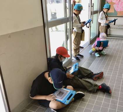 5月9日の梅坪小学校(12)9、10組 理科の授業