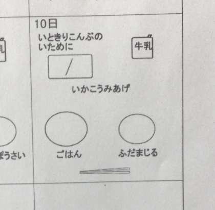 今日の給食は、いときりこんぶのいために、いかの香味あげ…です。