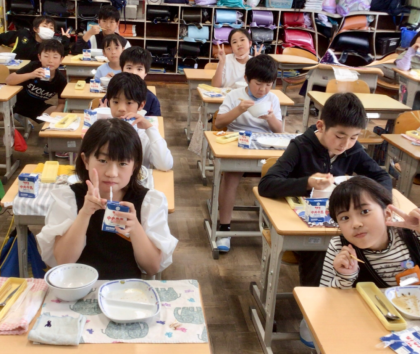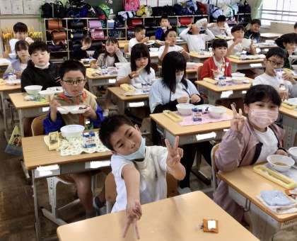 5月13日の梅坪小学校(7)4年生の会食風景