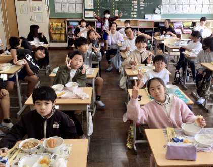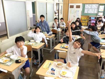 5月14日の梅坪小学校(8)5年生の給食風景