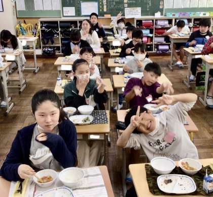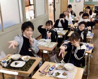 5月15日の梅坪小学校(5)6年生の給食風景