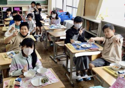 5月15日の梅坪小学校(7)6年生の給食風景