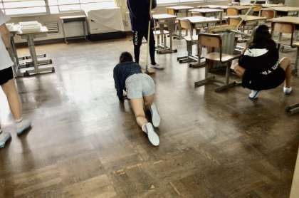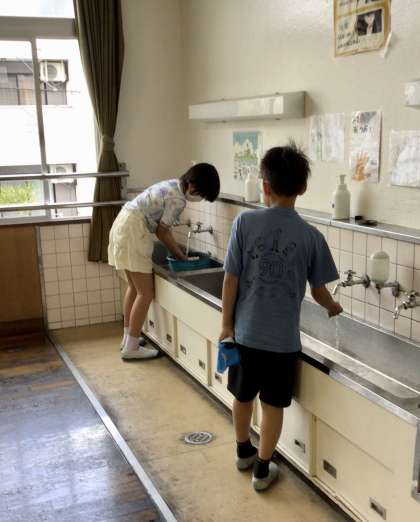 掃きそうじ、雑巾がけ、イス拭きなど、梅坪っ子は手を抜きません。