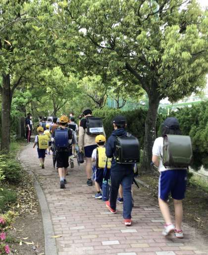 5月16日の梅坪小学校(5)一斉下校の様子