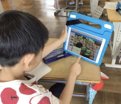 先週、学習用タブレットで夏野菜の苗を撮影し、発表ノート機能を使って、気づきをまとめました。
