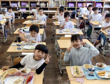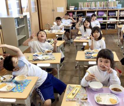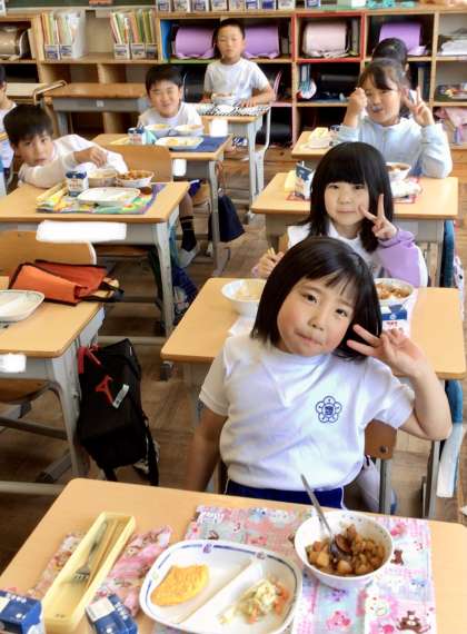 5月17日の梅坪小学校(4)2年生の給食風景