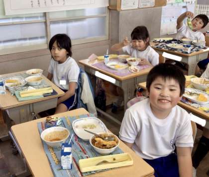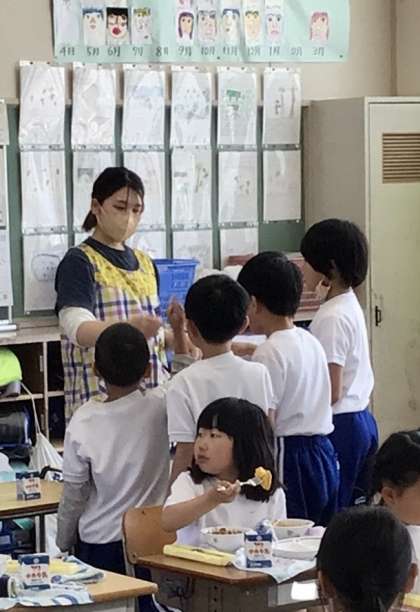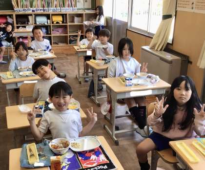 5月17日の梅坪小学校(5)2年生の給食風景