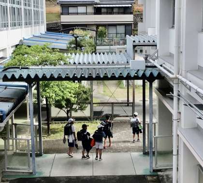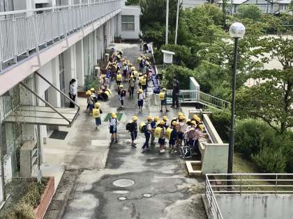 1年生、アサガオの水やりには長蛇?の列ができていました!