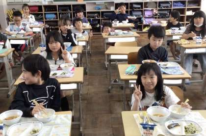 5月20日(月)の梅坪小学校(8)3年生の給食風景