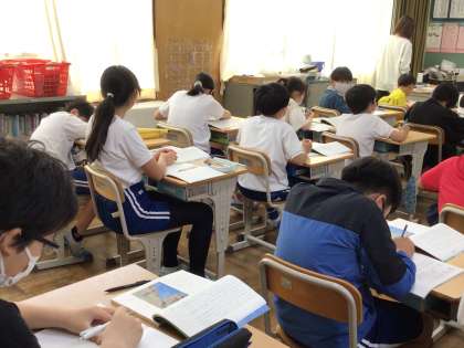 「イースター島にはなぜ森林がないのか」の学習に取り組んでいました。本論にはどのようなことが書かれているのか、段落ごとに読み取っていました。