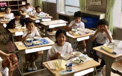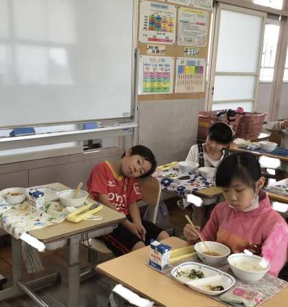 5月20日(月)の梅坪小学校(10)3年生の給食風景