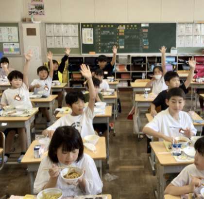 今日は、いつもフレンドリーな4年生の給食風景をお届けします。