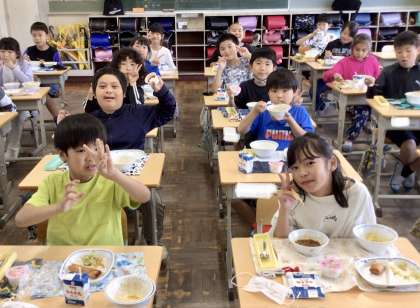 5月21日(火)の梅坪小学校(6)4年生の給食風景