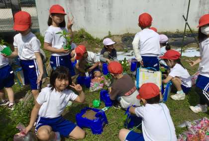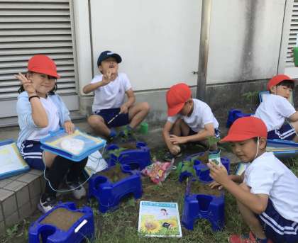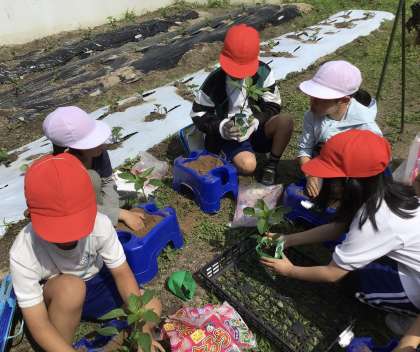 5月22日(水)の梅坪小学校(3)2年生 生活科 苗を植えたよ!