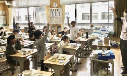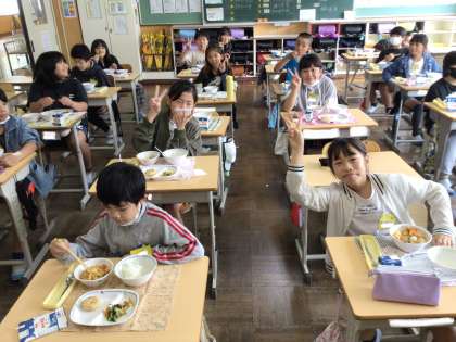 5月22日(水)の梅坪小学校(9)5年生の会食風景