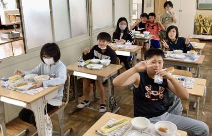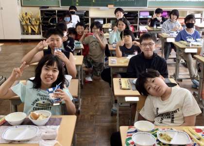 5月23日(木)の梅坪小学校(7)6年生の会食風景