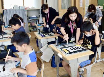 5月23日(木)の梅坪小学校(11)はじめての毛筆書写 公開日 2024/05/23 更新日 2024/05/23 各学年から 特別支援学級のみなさんが、今年度初めての毛筆書写に取り組みました。 今日は、書道用具の準備と片付けを復習しました。 心を落ち着かせて、筆の入れ方、運び方、止め方を学びました!