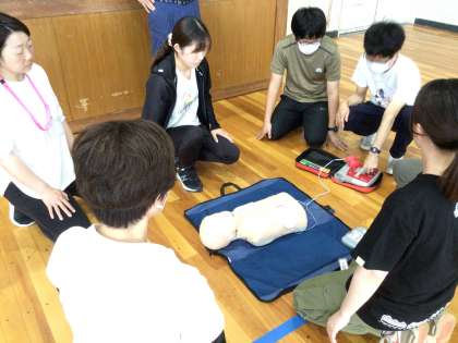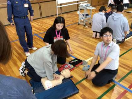 5月23日(木)の梅坪小学校(15)AEDを用いた救急救命講習 公開日 2024/05/23 更新日 2024/05/23 お知らせ AEDを用いた救急救命講習も行いました。 感染症の予防を踏まえた心肺蘇生法の手順を確認しました。 救急車が到着するまで、根気強く胸骨圧迫を続けることが大切だと教えていただきました。 もしもの事態に活かしてまいります。