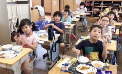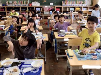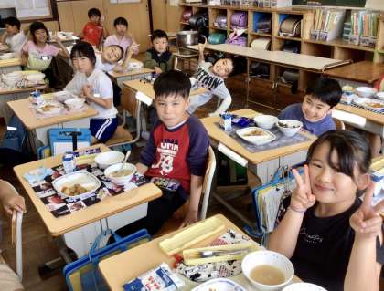 5月27日(月)の梅坪小学校(4)2年生の給食風景