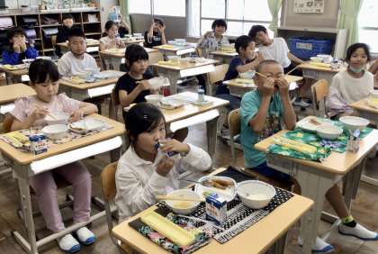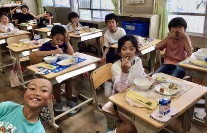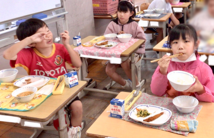 5月28日(火)の梅坪小学校(13)3年生の会食風景