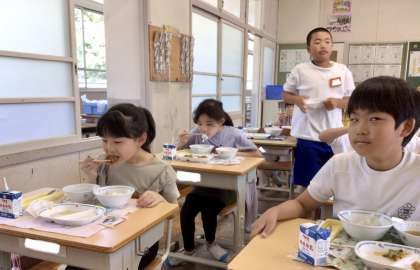 5月29日(水)の梅坪小学校(8)4年生の給食風景