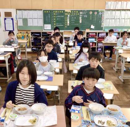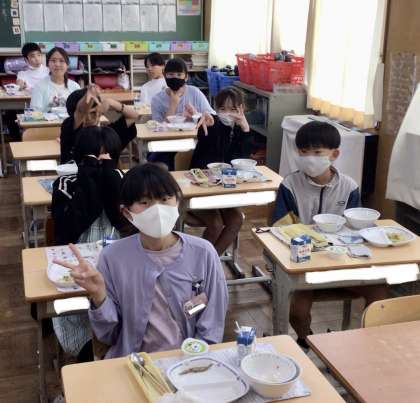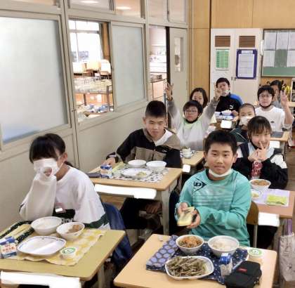 5月31日(金)の梅坪小学校(6)6年生の給食風景