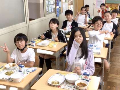 5月31日(金)の梅坪小学校(7)6年生の給食風景
