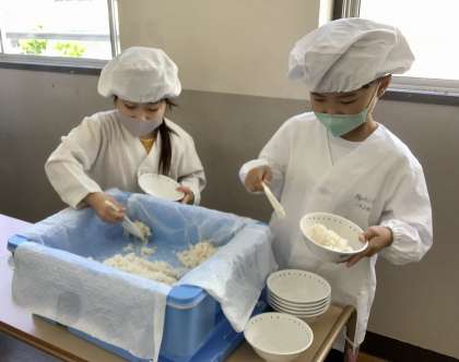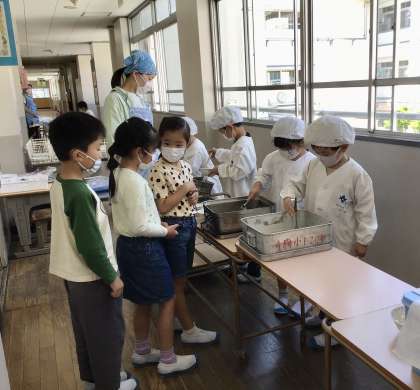 6月3日(月)の梅坪小学校(8)1年生の給食風景です!