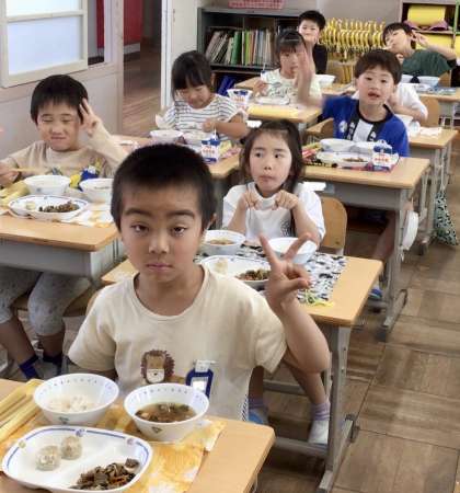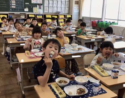 6月3日(月)の梅坪小学校(10)1年生の給食風景です!