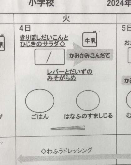 6月4日(火)の梅坪小学校(10)本日の給食は、かみかみ献立!