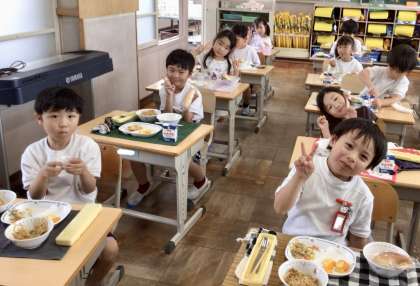 今日は、日に日にたくましくなる1年生の給食風景をお届けします!^ - ^